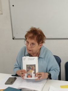 – une autre bénévole nous dit que ce serait très sympathique aussi d’inviter l’autrice d’un roman, Hélène DARTHOUX, qui a été professeur de français à Saint Gély du Fesc, et qui nous fait l’honneur d’être maintenant bénévole dans la bibliothèque de Saint Clément de Rivière.