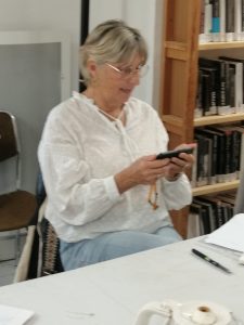 Puis Denise nous lit de magnifiques extraits de « Venir d’une mer », où l’on saisit l’aspect polysémique de ce titre qui désigne aussi bien la mer Méditerranée que la mère qui nous a engendrés. Des passages sont subtils comme :